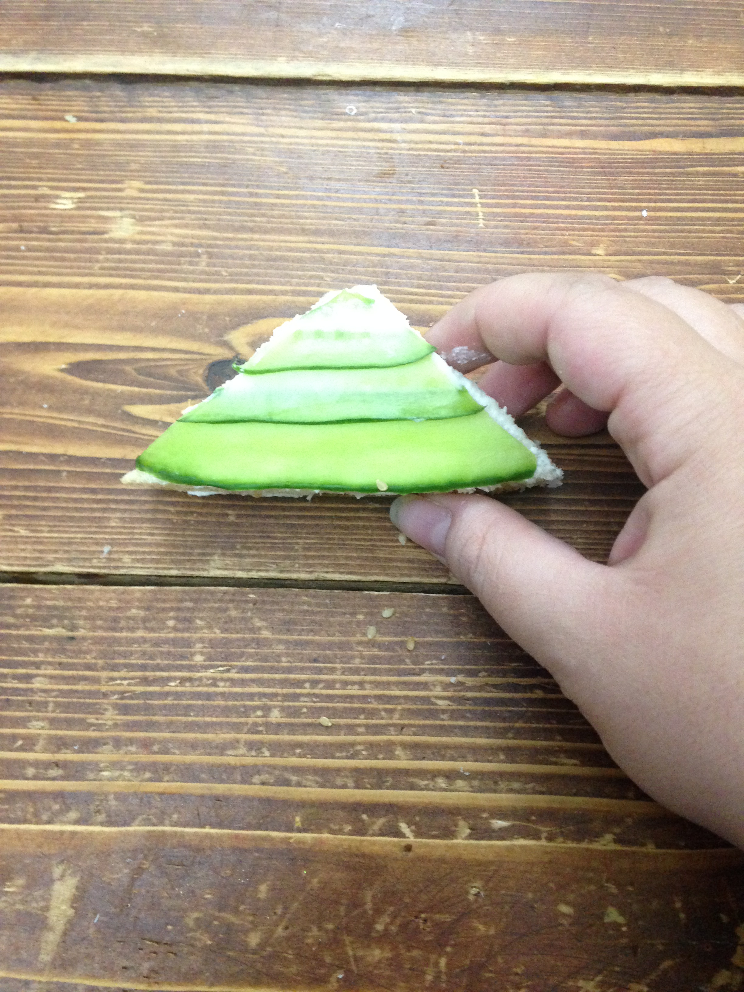 تهیه شده از پنیر خامه ای و خامه، و بسیار خوشمزه. سایز این لقمه ها، یک چهارم نان تست هست. (در عکس از زاویه نزدیک گرفته شده.)